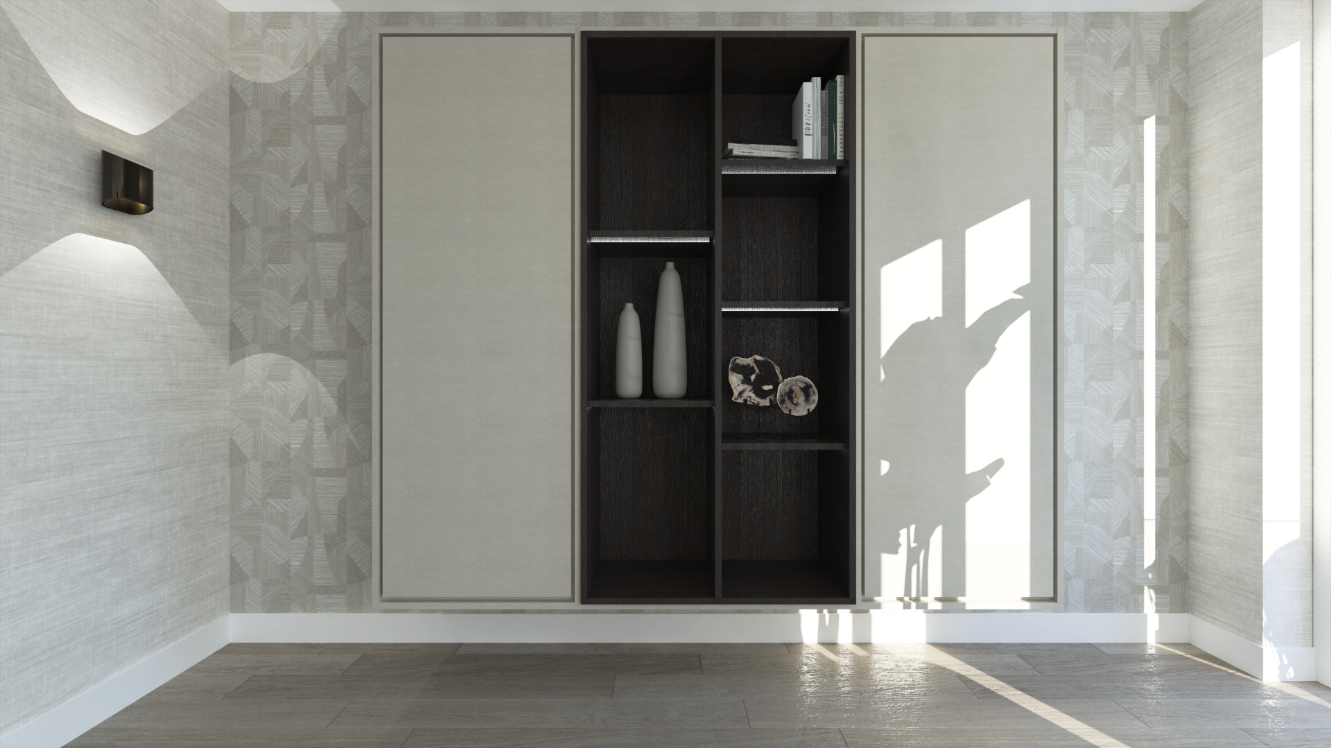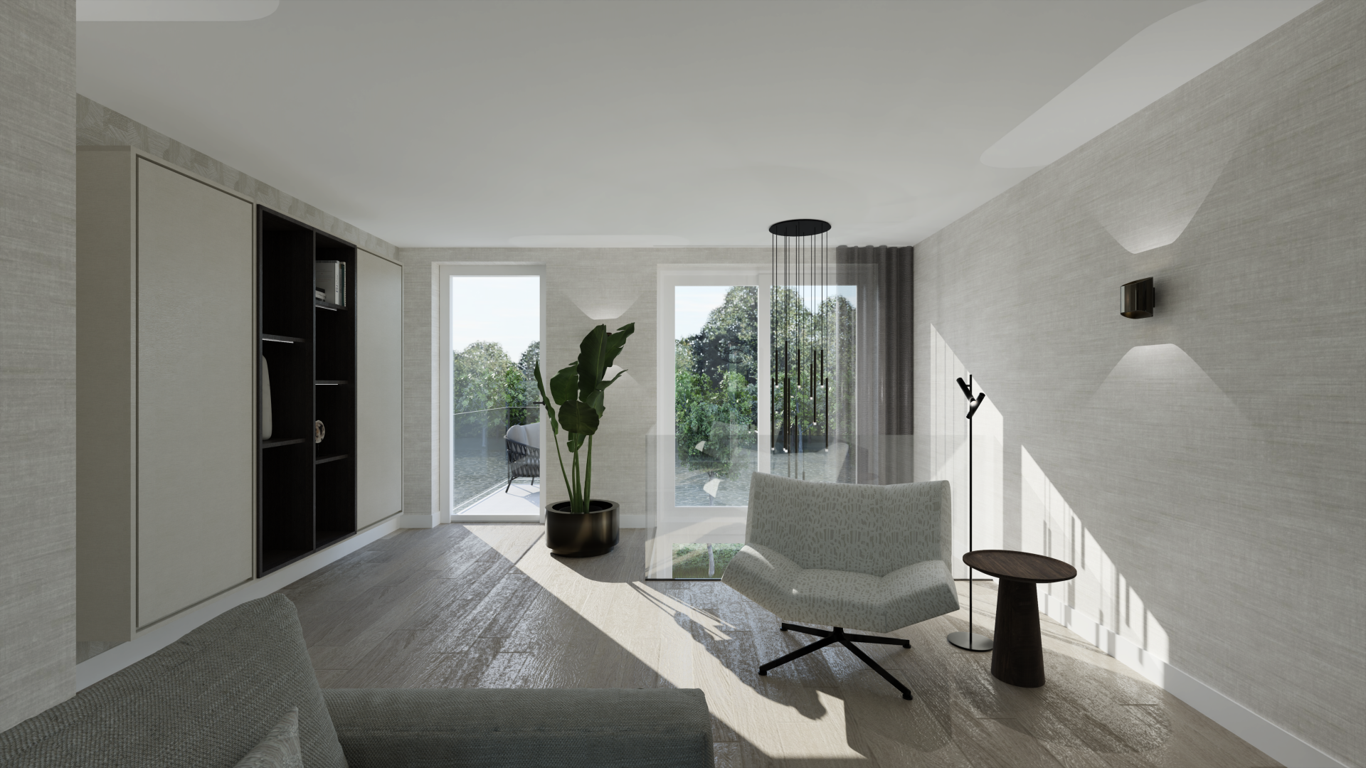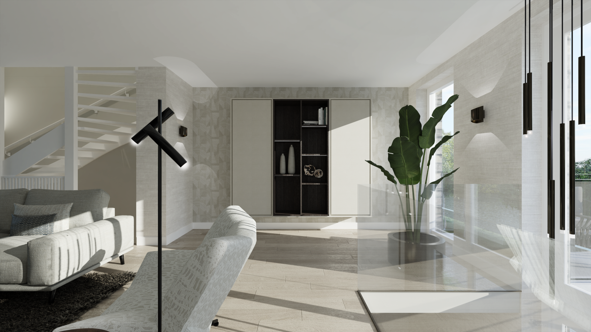 Voor deze opdrachtgever mochten we meer maken naast een 3D-ontwerp voor de woonkamer. We zijn namelijk gestart met een indeling- en verlichtingsplan voor de woonkamer en keuken. Vervolgens zijn voor de keuken de meubels en materialen uitgekozen, evenals voor de woonkamer. Echter is alleen de woonkamer in 3D uitgewerkt. Het unieke element van deze woning is dat deze split-level is. De keuken zit op de begane grond en de woonkamer op de 1e verdieping. De wens: ondanks de verschillende verdiepingen toch een rustig geheel creëren.